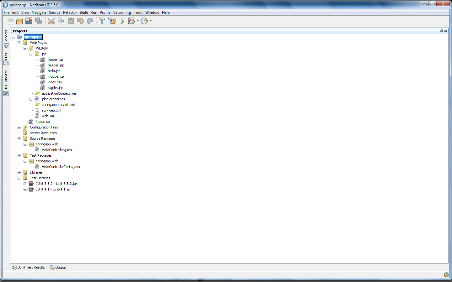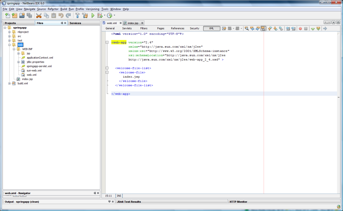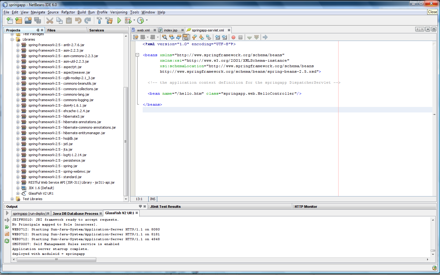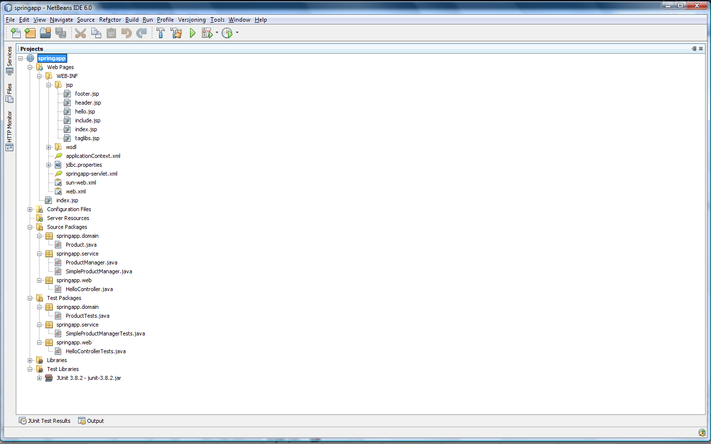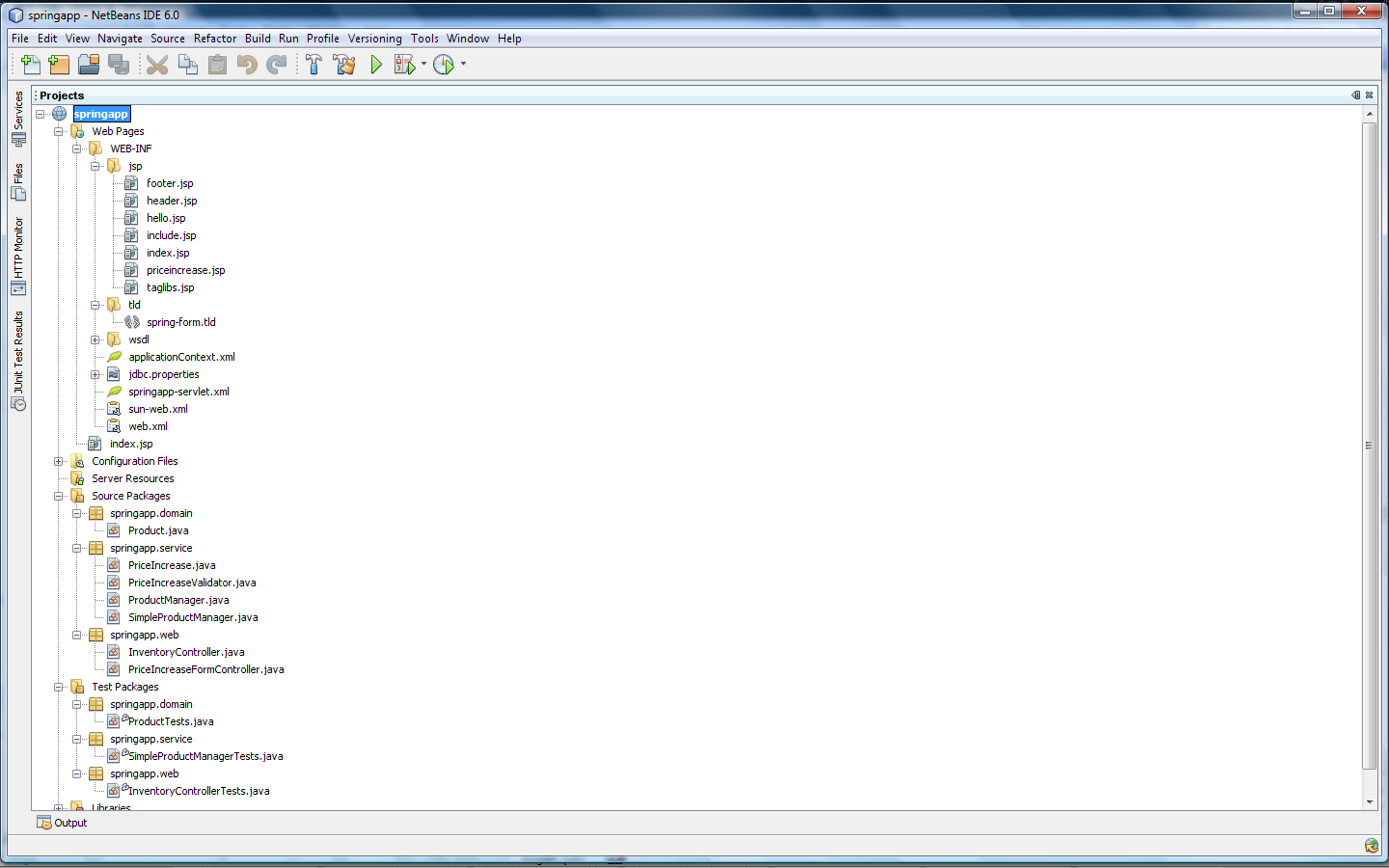 NetBeans IDE 6.0 Full Pack (http://www.netbeans.org) provides an excellent environment for web application development. The Ant build scripts are omitted from this discussion as they are automatically generated by the IDE. The Spring plugin module for NetBeans should be installed prior to start of this project,