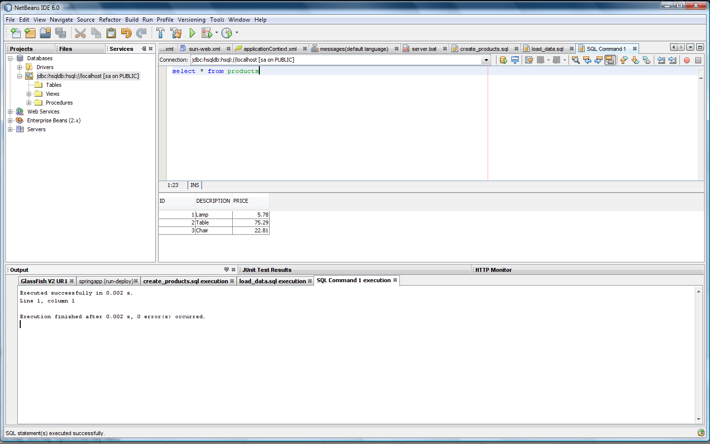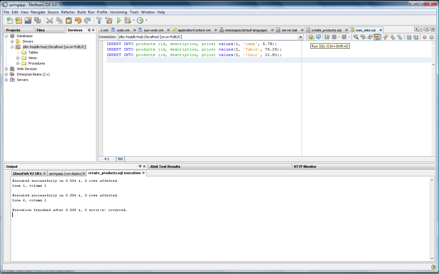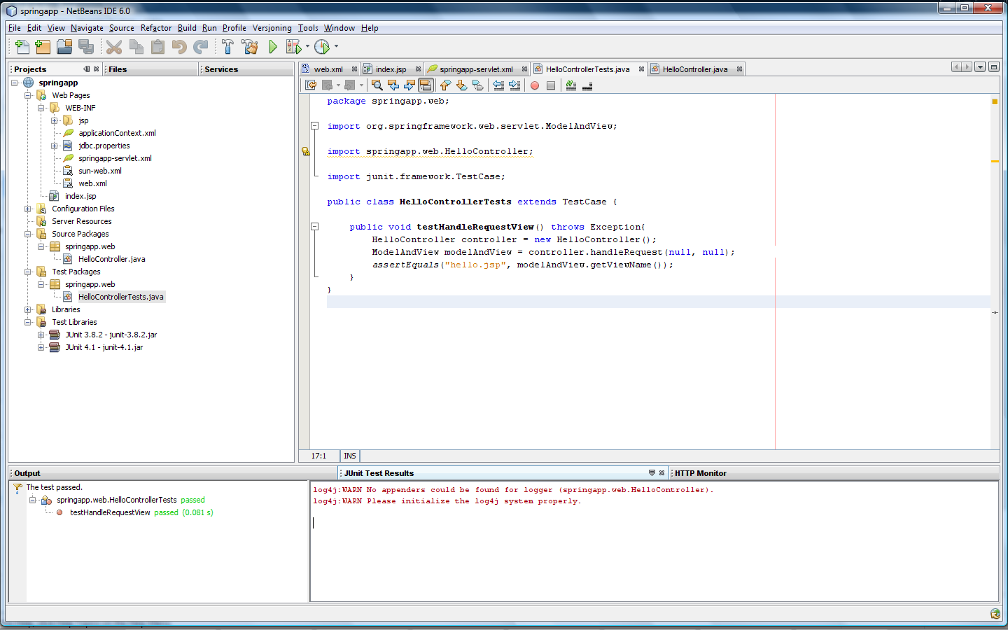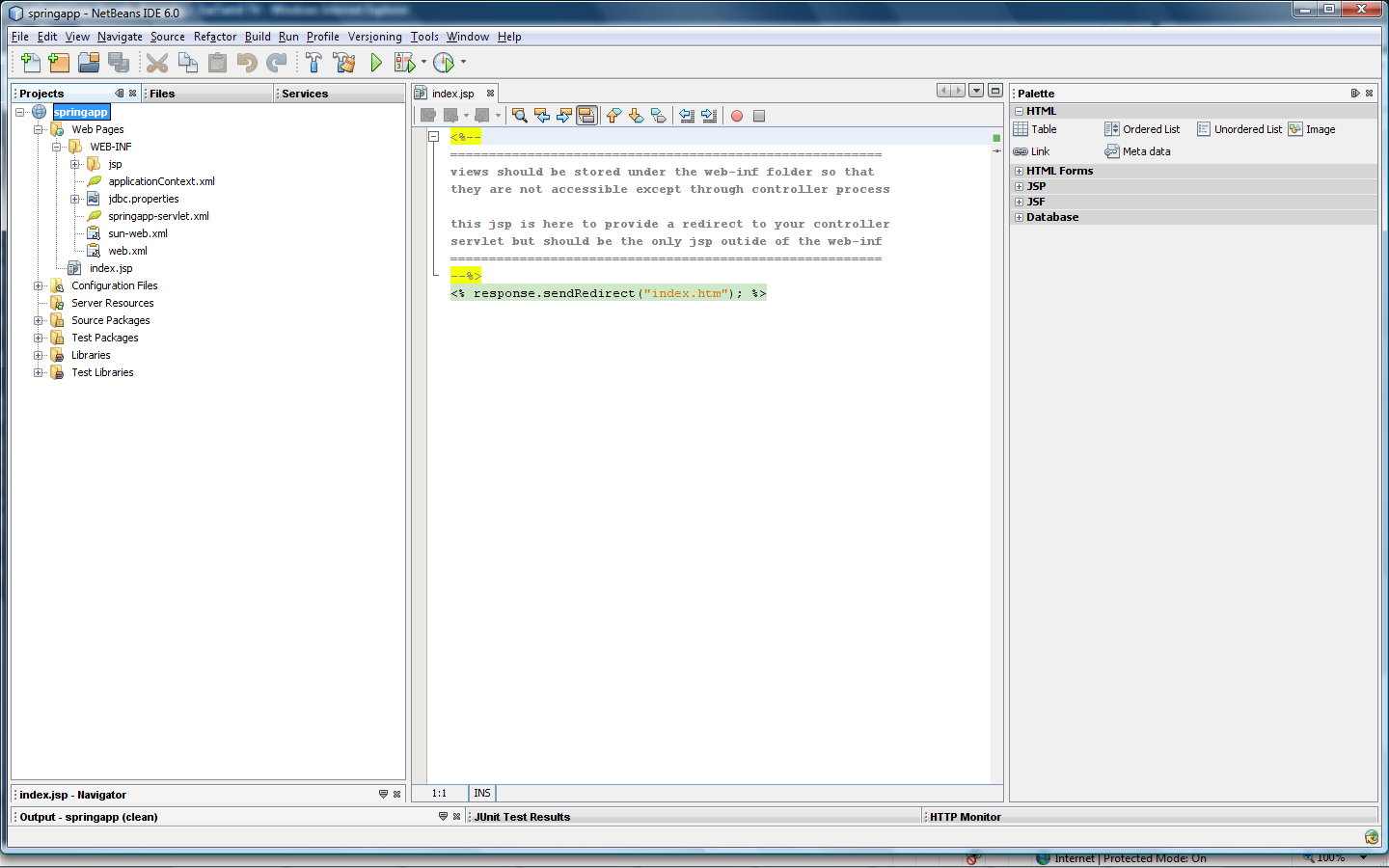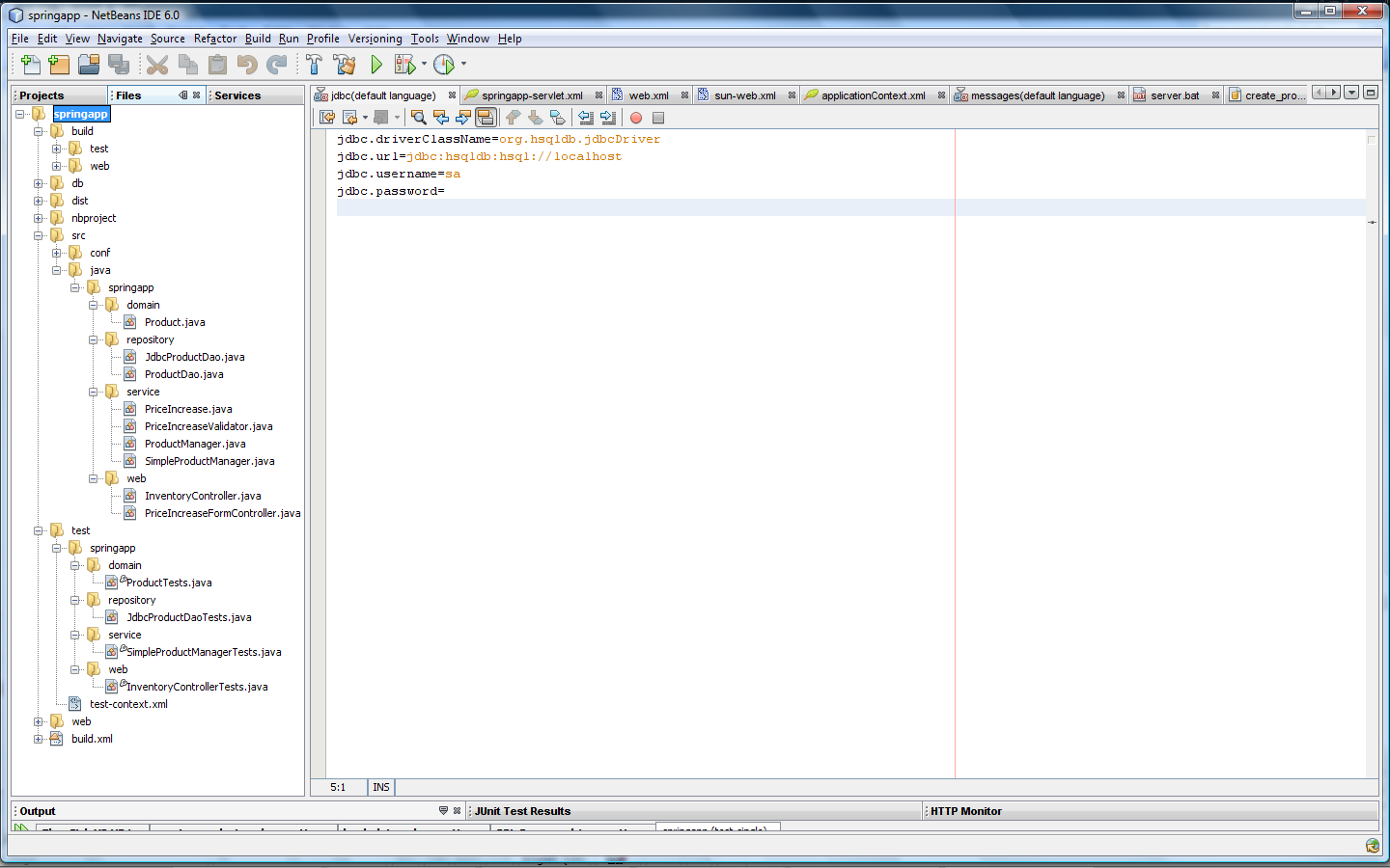NetBeans IDE 6.0 Full Pack (http://www.netbeans.org) provides an excellent environment for web application development. The Ant build scripts are omitted from this discussion as they are automatically generated by the IDE. The Spring plugin module for NetBeans should be installed prior to start of this project,